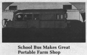 School bus makes great portable farm shop FARM SHOP Miscellaneous 10-2-9 "Three years ago I decided to try to put our tools, oil, fuel, welder and other shop equipment on one vehicle for field servicing and repairs. We farm about 5,000 acres and custom cut hay on another 1,400 acres so we spend a lot of time repairing and maintaining machinery in the field," says Ron Armstrong, Youngstown, Alta.