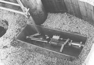 It consists of a hydraulic unit inside a box and a latch mechanism. No electricity is required. A pressure relief valve allows the gate to be manually opened or closed in case the water pressure fails. For cold weather areas, a frost kit is available that uses oil and compressed air instead of water to open the gate.