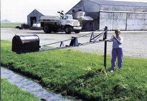 M and J Fertilizer, Pana, Ill., came up with this nifty "swing out" mailbox that eliminates the need to cross a road ditch to fetch the mail.