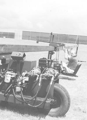 The center pivot point consists of a steel post. The beam is made of 4 by 6-in. steel tubing. The powered driver unit is fitted with a 13-in. auto wheel.