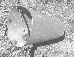 "I made two of these funnels, one on an auger that I use to fill my dryer bin and the other on a transport auger that I use to load trucks. The rod is off an old wagon box. My only cost was for the sheet metal which I bought at a plumbing store.