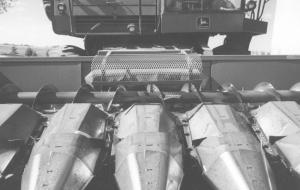 "To keep ears of corn from flipping out of the feederhouse on my Deere 7720 combine, I made my own ęcorn saver'. I used a curved angle iron frame that came off an old Deere pull-type rotary hoe and welded expanded metal onto it, bending the metal to match the curve of the angle iron. The angle iron bolts onto the header. I made a hinging mechanism so that the corn saver can be flipped up out of the way whenever I need to work on the header. It works good and cost almost nothing to build. I paid $10 for the expanded metal. Commercial models sell for about $200."
