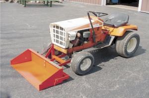 Front-End Loaders For Garden Tractors, ATV's TRACTORS Loaders 25-4-19 "It's a material transport bucket for the common man with a common yard, a common tractor, and mostly a common wallet," says John Scheele, Milwaukee, Wis., about his company's new front-end loaders for Bolens and Simplicity garden tractors.