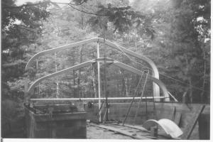 One corner of the building was cut into the side of a high bank, so the building was set on top of a concrete wall 4 ft. above the finished floor. "Even if I would have been able to use a conventional scaffold to raise the arches, they would still need to be raised straight up 4 ft. in order to get them up on the sill channel. A completed arch weighs about 200 lbs., so it wouldn't have been an easy job without this hoist," notes Pehovic.