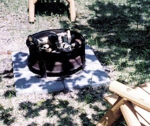 This 24-in. dia. camp fire ring draws air from the bottom, which eliminates most of the smoke that gags us. I get a brighter fire and more heat. The ring mounts on four 18-in. sq. patio blocks. All I do is add dry wood and light the fire. It cost me $120 to put together. (Dan Jacobson, 8913 Weaver Lake Drive, Pequot Lakes, Minn. 56472 ph 218 543-6623)