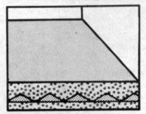 To solve it, he covered the wet floor with 1¢-in. steer corrugated roofing, laid in place so that all corrugations run toward the drain at one end of the basement. He simply cut around poles and other obstacles. Then he poured 4 in. of concrete over the top of the steel sheeting, covering the entire floor except for the last 4 ft. around the drain. All water runs down the channels under the concrete and out into the open where it then runs down the drain.