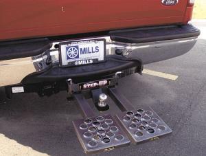 Pickup Step Slips Into A 2-In. Receiver Hitch PICKUPS Accessories 32-1-41 My pickup step slips into a 2-in. receiver hitch and can be used with a ball hitch. By pulling a pair of spring-loaded pins, you can swing both steps back to provide an extended step whenever the tailgate is open. No assembly or drilling is required.