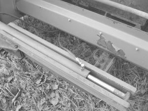 Cofer's brothers, including one who was a former Deere engineer, worked with Cofer on the design. The hydraulic hitch is made of 4-in. sq. tubing bolted to the original transport hitch and the harvester's blower housing. On top of that, scrap 3-in. channel iron holds a hydraulic cylinder which moves back and forth 30 in.