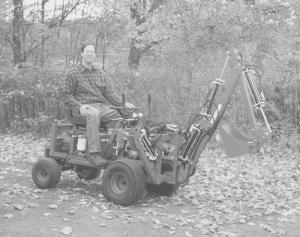 "I built it as a challenge and couldn't be happier with how it turned out," says Andrew Vincek, Saratoga Springs, N.Y., about the home-built, self-propelled mini backhoe he made out of an old Murray lawn tractor. He made the rig's eight hydraulic cylinders out of shock absorbers.