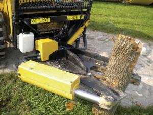 The HTC-14 cuts a 14-in. tree at ground level in 5.5 seconds; the smaller TBL-1000 has a 10-in. capacity. The single blade design of the TimberlineÖ Tree Shear eliminates complicated adjustments and sharpening, and the unique serrated tooth configuration holds the tree during the cutting cycle allowing for predictable cutting. Made from high tensile steel plate, all major pivot points are machined and greaseable for long life. This world class attachment is the professional's choice for land and tree management.