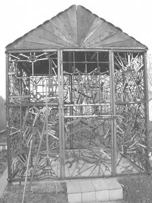 "I like the tool shed because it was one of Mike's last and biggest efforts," says his wife, Mary. "He had been diagnosed with cancer and was trying to use up his tool supply."