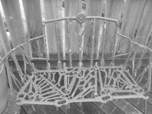 Mike left the shed and gazebos in their natural state, but he ground benches and tables smooth, painted them and made them as comfortable as you can make iron, Mary says.