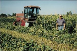 They purchased the seed, a non-GMO variety, from Arkansas. By growing seed intended for a warmer climate and planting a dense population, the beans grow taller with smaller stems as the plants reach up to compete for sunlight. Planted at 300,000 seeds per acre, harvest - after flowering when the first soft pods form - yields about 5 tons of dry matter/acre.