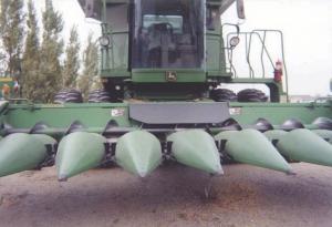 Combine Add-Ons Save Grain Handle Trash COMBINES Accessories Changes Tim Petersen has made to his Deere combine improve grain and trash handling His Grain Saver prevents corn ears from bouncing out of the feeder housing On the underside of chopper-style Deere corn heads his in-row and between row deflectors keep trash from windrowing to the side Newer Deere combines don t need the Grain Saver but older models lose ears that bounce out of the feeder says Petersen My Grain Saver uses existing bolts and holes to lay over the auger ends and keep ears from flying out Petersen says the 3 by 5-ft plastic sheet covers more area than the original auger guard It also allows the combine operator to look down and see the augers It s heavy duty and will never wear out says Petersen If heavy trash is a problem it can be flipped out of the way to lay on the throat Normally that isn t a problem It s lightweight and inexpensive compared to other shields Petersen has also started offering improved stalk deflectors for Deere StalkMaster chopping corn heads Initially he developed between-row deflectors to replace the OEM installed deflectors The originals were flimsy belt-style deflectors that wore out quickly and tended to break off at the metal mount that held them in place says Petersen I made replacements out of high density plastic They mount to the same bolts but are longer with a fishtail end The others wear out in about 1 000 acres Mine have gone a thousand acres and show no wear He notes that trash windrowing is a common effect of chopping corn heads The original belt-style deflectors would hang to the side as they wore and trash would be windrowed to the side This would create problems on the next pass for the end row unit as it ran into the windrowed trash from the previous pass My deflectors reduce windrowing notes Petersen My neighbors started asking for them so I applied for a patent I d like to find someone to make and market them For even less windrowing from chopping corn heads Petersen has patented in-row trash deflectors The 1/4-in steel plate units mount directly behind the chopping knives on existing bolts Not only do they reduce windrowing but they also protect the mounting bolts from wear They are designed with slots for the bolts so they can be adjusted for angles as needed says Petersen It lets some of the trash go by but not all of it It really improves trash flow and reduces windrowing even more than the between row deflectors Peterson sells the add-ons through Pete s Power Parts his online business The Grain Saver is priced at $175 for older Deere combines though Peterson has also made them for other makes The between-row deflectors are priced at $35 each while the in-row deflectors are priced at $25 each Contact: FARM SHOW Followup Pete s Power Parts 702 East Appel St Springfield Minn 56087 ph 507 220-6900; info@petespowerparts com; www petespowerparts com