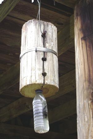 "To set up the trap, I put about 4 oz. of sugar water in the bottle and then screwed it into the bottom of the pole. I hung the trap at the rear of the barn. My bee problem was solved," says Williams.