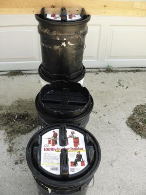 While the company warns against using the system as scaffolding, the stability is exceptional. Tabs and bulges in the molded plastic help to hold the 2 by 4's in place. For added stability, the HBB tops have indents for toe-screwing the tops to the 2 by 4's. In the case of FARM SHOW's trials, bottom buckets were weighted with sand. This made for exceptional stability even when using only two sets of HBB tops.