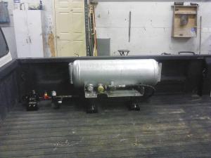Adding the Power Shot 2000 propane system was actually the second big modification. The first was to swap out a bad motor in the Toyota for a Cummins diesel he pulled out of an older Frito Lay delivery truck. He modified the Toyota frame and the Cummins engine slightly to get it to fit.
