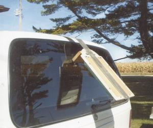 The mirror measures 16 in. long by 12 in. wide. It has a metal strap that hooks over the van’s tailgate. It’s angled so you can clearly see the ball hitch. I keep it under the rear seat whenever I’m not using it. (William Yewell, 1721 K Ave., Ogden, Iowa 50212, ph 515 275-2252)