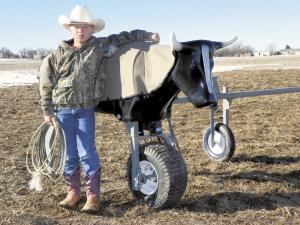“Instead of carrying hay, it’s a plastic body with three sets of horn,” Unruh says. “It’s easy to carry around. We take it camping. When we get bored, we get out the dummy and rope.”