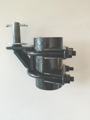 Hackman says for metal posts larger than 2 1/2 in. he uses larger muffler clamps and that makes an even stronger hinge. The hinge bracket can also be adapted for wooden posts using a pair of U-bolts and a metal strap to secure the hinge. Another alternative would be to make the vertical support on the bracket about 6 in. long, then drill 2 holes for 3/8-in. bolts that thread through the post and are held on the opposite side with nuts and lock washers.