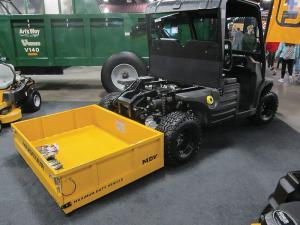 The bed on this new utility vehicle doesn’t just carry a load - it lifts and lowers it flat to the ground. And it can dump the load at any point along its arc of motion.