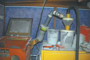 He Made His Own Dust Doctor FARM SHOP Miscellaneous Andy Sewell North Yorkshire England: “FARM SHOW ran a piece on a valve I made for a vacuum hose that sucks fine glass bead dust out of my bead blasting cabinet Vol 40 No 6 A reader kindly contacted me and suggested that he had used a similar idea when working with wood shavings but with the addition of a DustDoctor cyclone I couldn’t find one in England so I made my own using a 7-in clear plastic funnel At the bottom I cast a block of poly to act as a base to mount it over a bucket The air inlet enters the top of the funnel at a shallow angle with a piece of thin plate an inch below it to control the direction of flow My bleed valve remains in place so I can still regulate the amount of vacuum at the blast cabinet “It worked great the first time I fired it up Total cost was just a few dollars and the benefit is a huge increase in vacuum cleaner bag life So thanks to FARM SHOW and its readers ”