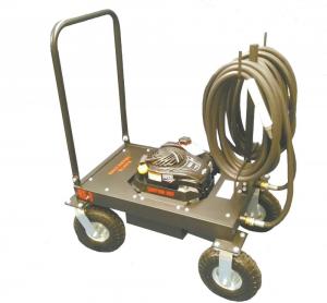 The cart makes it easy to move from hole to hole, and with both hoses you can easily cover a 50-ft. radius. (100 ft radius hose optional). The machine has been field-tested for more than 2 years and is built to last. It costs about a DIME a burrow for fuel. Use It In any weather and any day of the year.