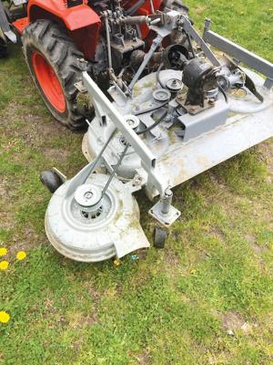 “It takes 6 1/2 hrs. for one person with a 48-in. mower to do the job,” says Frisk. “With 60-in. mowing swaths with our Kubota and Cub and the help of a friend with another Cub, it goes fast.”