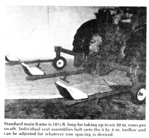 Seat spacing is adjustable to accommodate any row width. Each rider can adjust seat and foot position to suit his fancy.