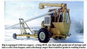 They've used the rig since 1993 to move an estimated 300,000 bu. of wheat. It's equipped with two augers - a long 40-ft. one that pulls grain out of storage and into a collection hopper, and a discharge auger that transfers grain to waiting trucks.