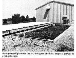 Since 1970, the horticulture specialists at ISU have dumped about 50 different weed chemicals, fungicides, and insecticides into a disposal pit which they designed and built in conjunction with ISU ag engineers and 5 other departments. It has safely disintegrated pesticides so they don't contaminate ground water or the atmosphere.