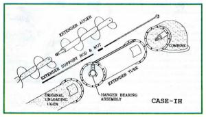 Gleaner N & R Series combines are ex-tended 4 ft. by replacing original 12-ft. long factory auger tube with 16-ft. tube and auger extension. Prices for extender kits vary from $595 to $695 (Canadian), depending on make of combine and length of extender.