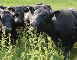 “When your cows learn to eat the weeds in pastures, you could gain as much as 43 percent more forage,” says Voth. “When cows eat the weeds, you eliminate the expense of weed control and have more feed at no additional cost. Cows gain weight more rapidly on the high protein weeds so you’ll raise more cows more cheaply, and you’ll make more money doing it.”