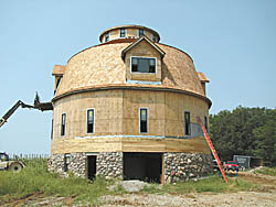 "I just love to be in somebody else's barn," Willemsen told FARM SHOW as he looked out over an Iowa vineyard from the fourth story of the 7,600-sq. ft. round barn. Though still under construction, the building already had used two semi loads of field rocks, five semi loads of wood and 80,000 nails. The round barn has a root cellar and garage at the bottom, and a wood shop and canning kitchen on the next floor. The main living quarters are on the third floor and there's an office at the top.