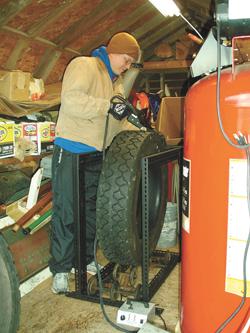 To make the job easier, Cornell designed and built a tire regrooving cage. He saw a used one for sale on eBay, but his cost him nothing.