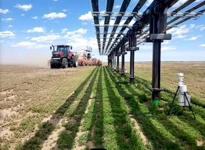 When Tibor Hegedus saw snowdrift fences while on a family vacation, he envisioned an ideal rack for solar panels. He calls the concept a Dynamic Agrivoltaic Shelterbelt. For 18 mos., starting in 2021, he had a test site in place alongside I-80 in Wyoming. For the past year, the 100-ft. long set of 5-ft. long solar panels has been in place on Roy Pfaltzgraff’s northeastern Colorado farm.