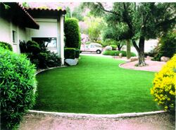 According to company president, Dale Potts in Scottsdale, Arizona, the artificial grass is as resilient and realistic looking as real grass, and much more dependable.