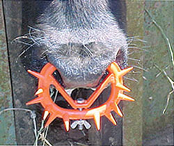 South African Dick Richardson developed the EasyWean NoseRing to mimic the old Zulu method. The spiked plastic ring is fitted into the nose of the calf and tightened against the septum with a stainless steel fastener.