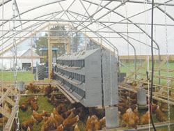 For Bahnck, a carpenter in a depressed economy, the chicken hoop house was a no-brainer. "Work was slow, and this was instant income," he says. "My wife raises and markets purebred Berkshires and Tamworths for the pasture fed market, so we knew how to market. We knew there was a niche in egg production that this system could fill."
